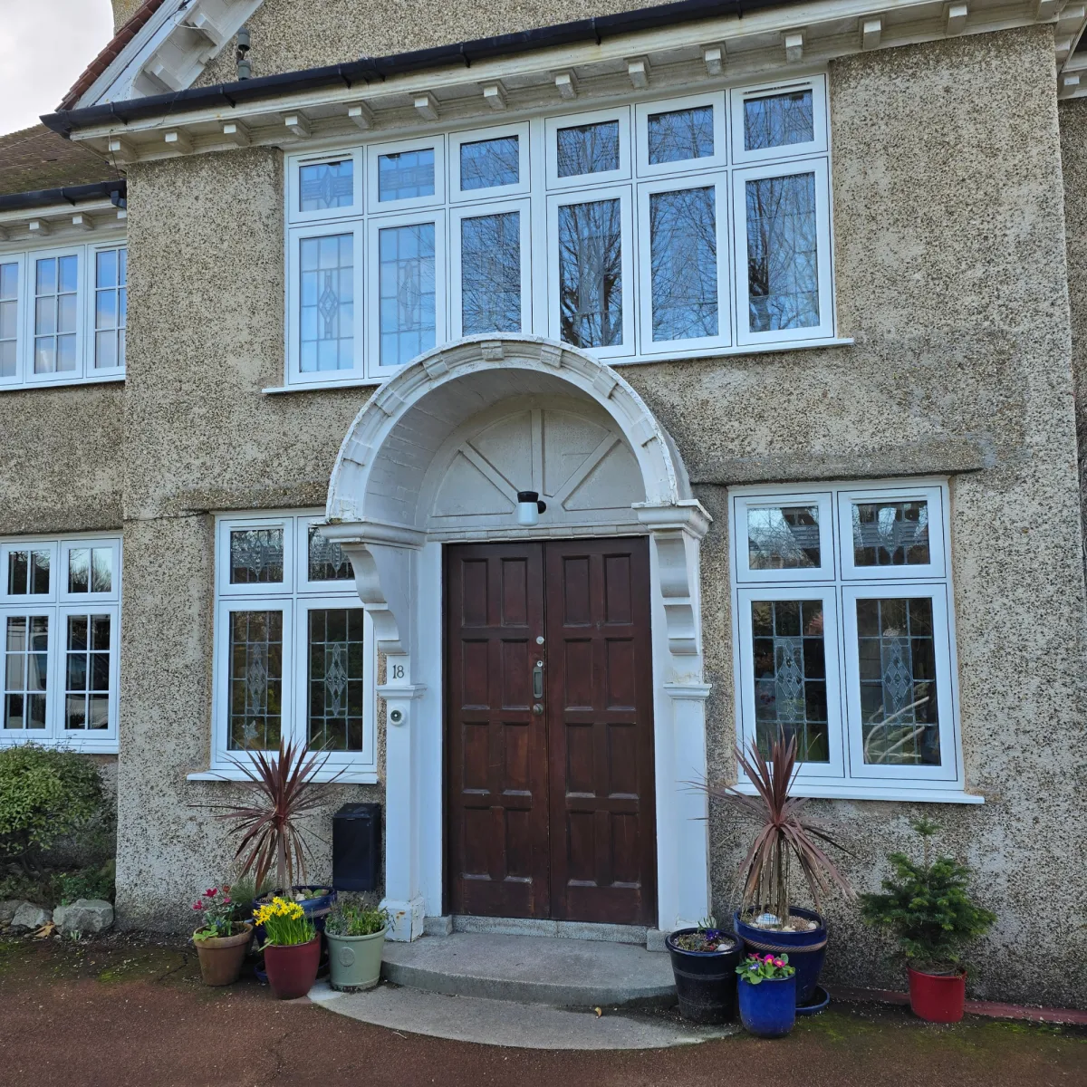 We fit UPVC windows, composite doors, UPVC doors and aluminium doors including bifolds. Our ranges include Rayal, Residence and Roseview — all available in a wide range of colours and finishes.